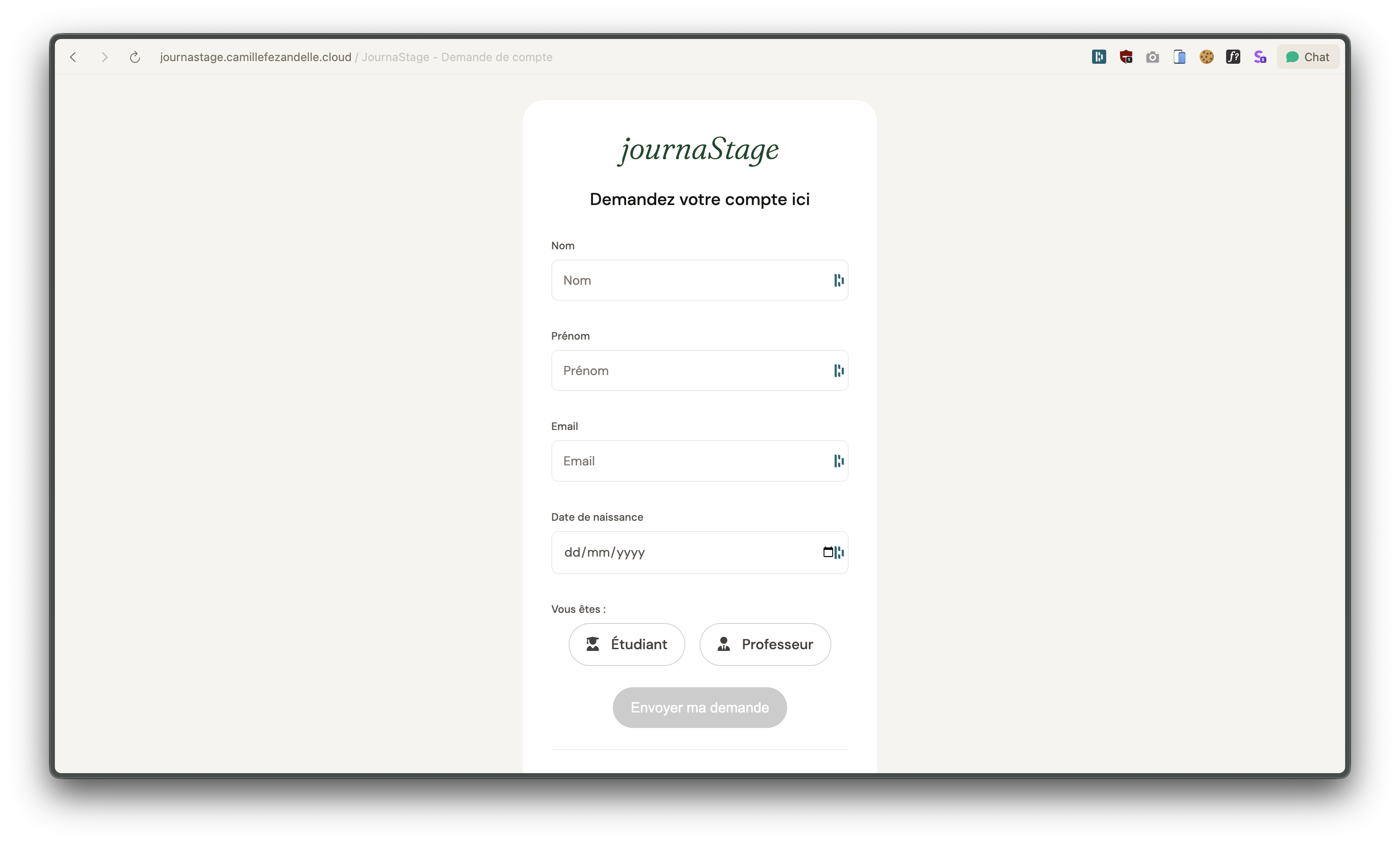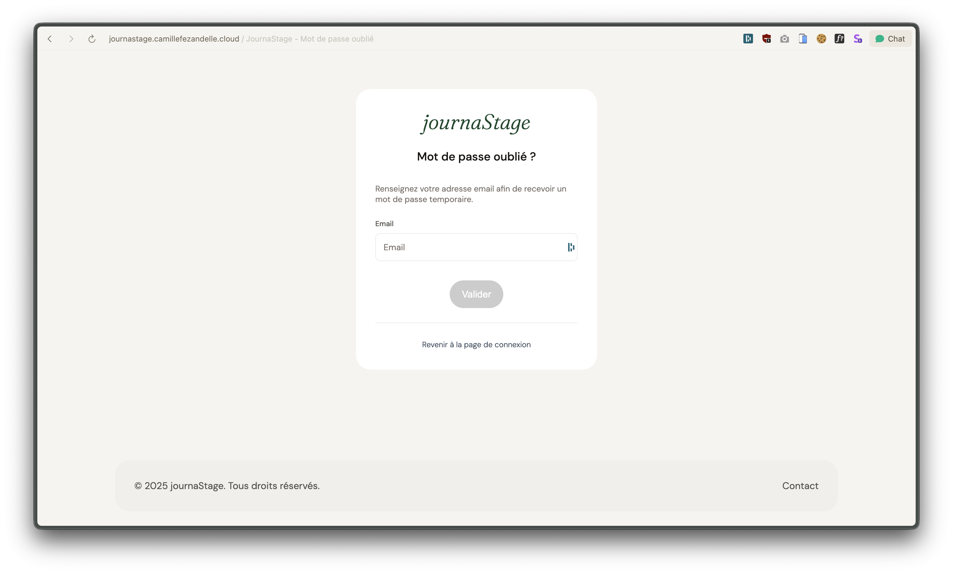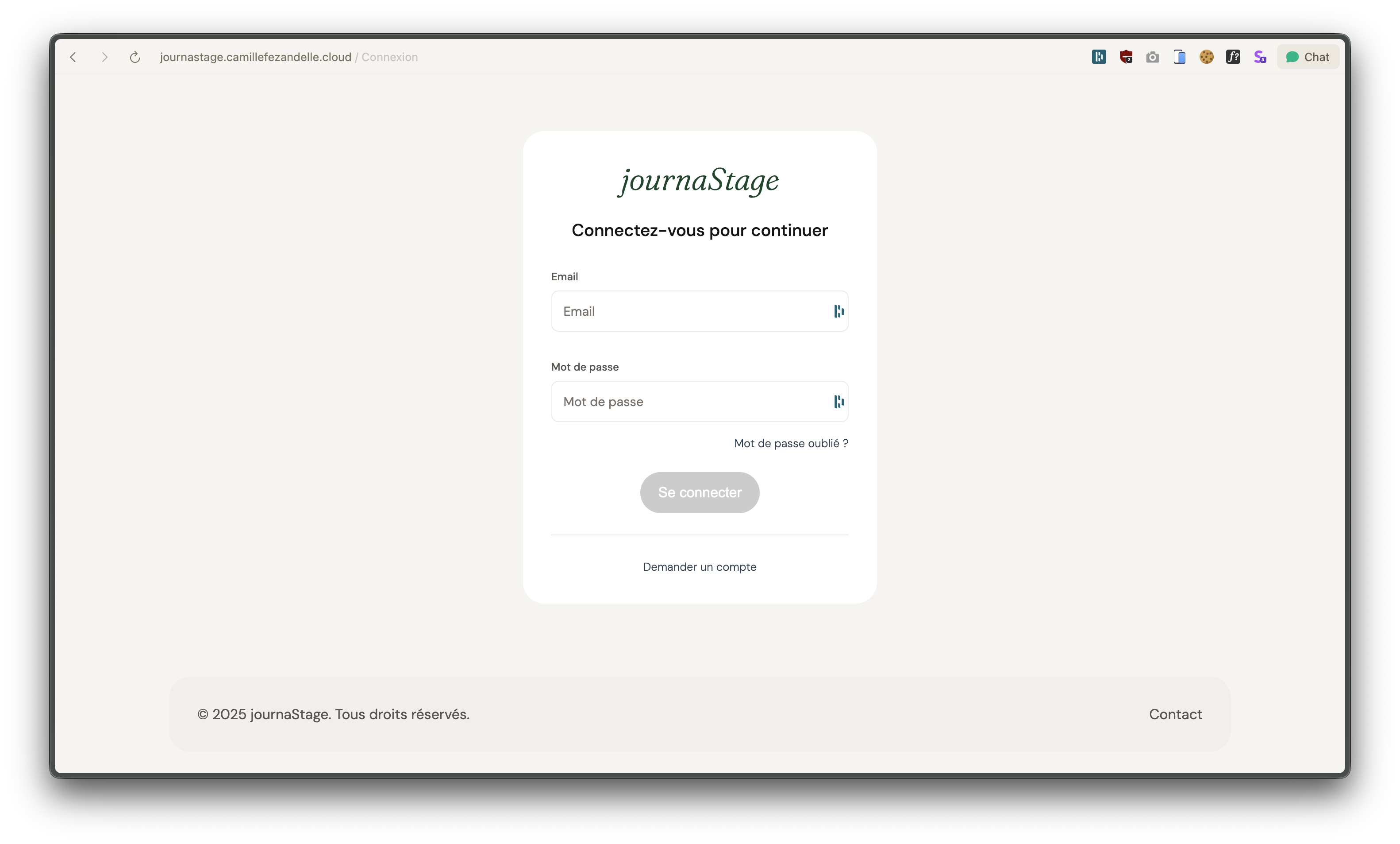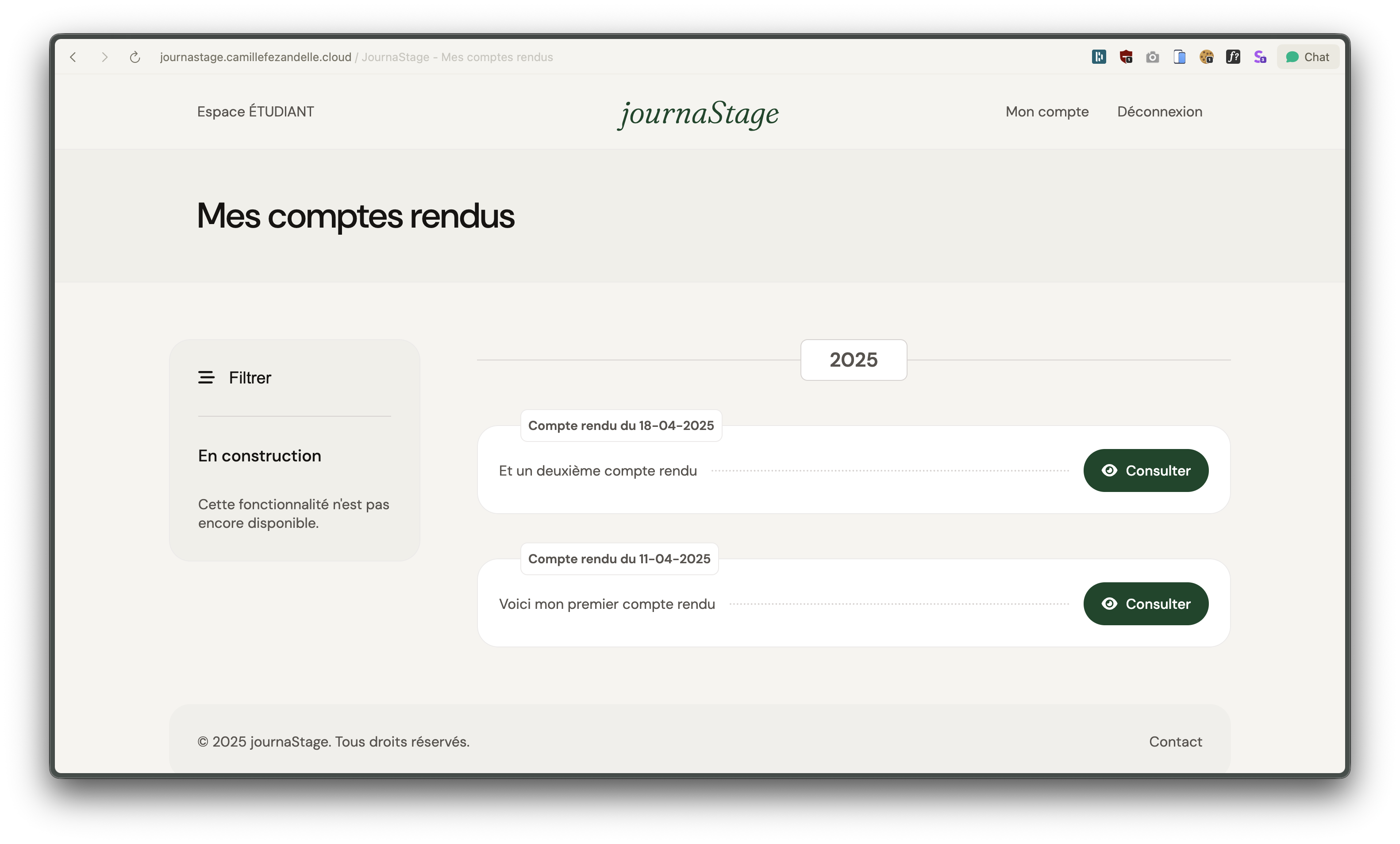 JournaStage est une plateforme web en PHP destinée à faciliter la rédaction et le suivi des comptes rendus entre étudiants et enseignants. Elle offre une interface simple, moderne et sécurisée pour centraliser tout le processus.