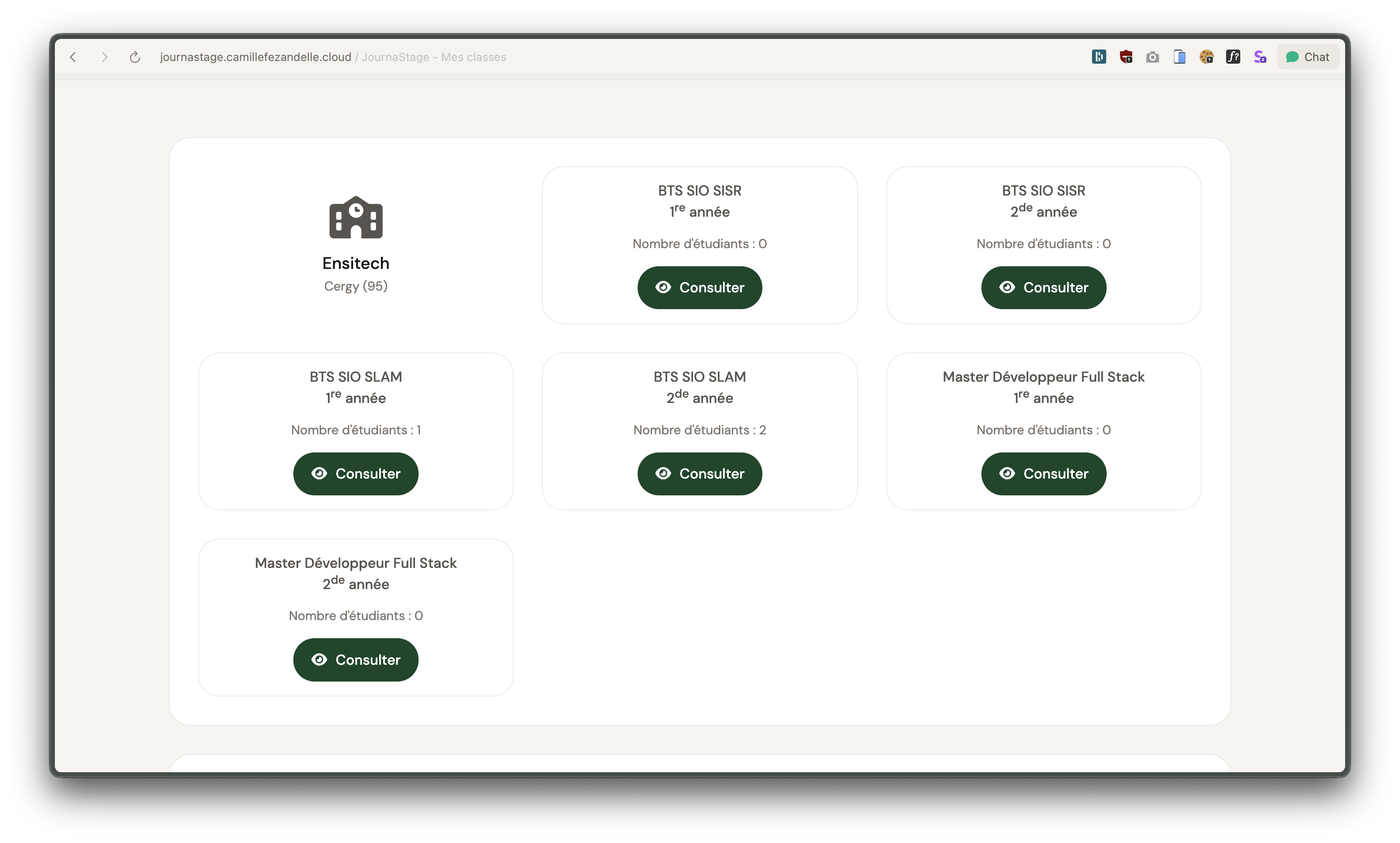 JournaStage est une plateforme web développée en PHP avec une architecture MVC (Model-View-Controller) et une base de données MySQL. Elle a pour objectif de faciliter la rédaction, le suivi et la validation des comptes rendus entre les étudiants et les enseignants.